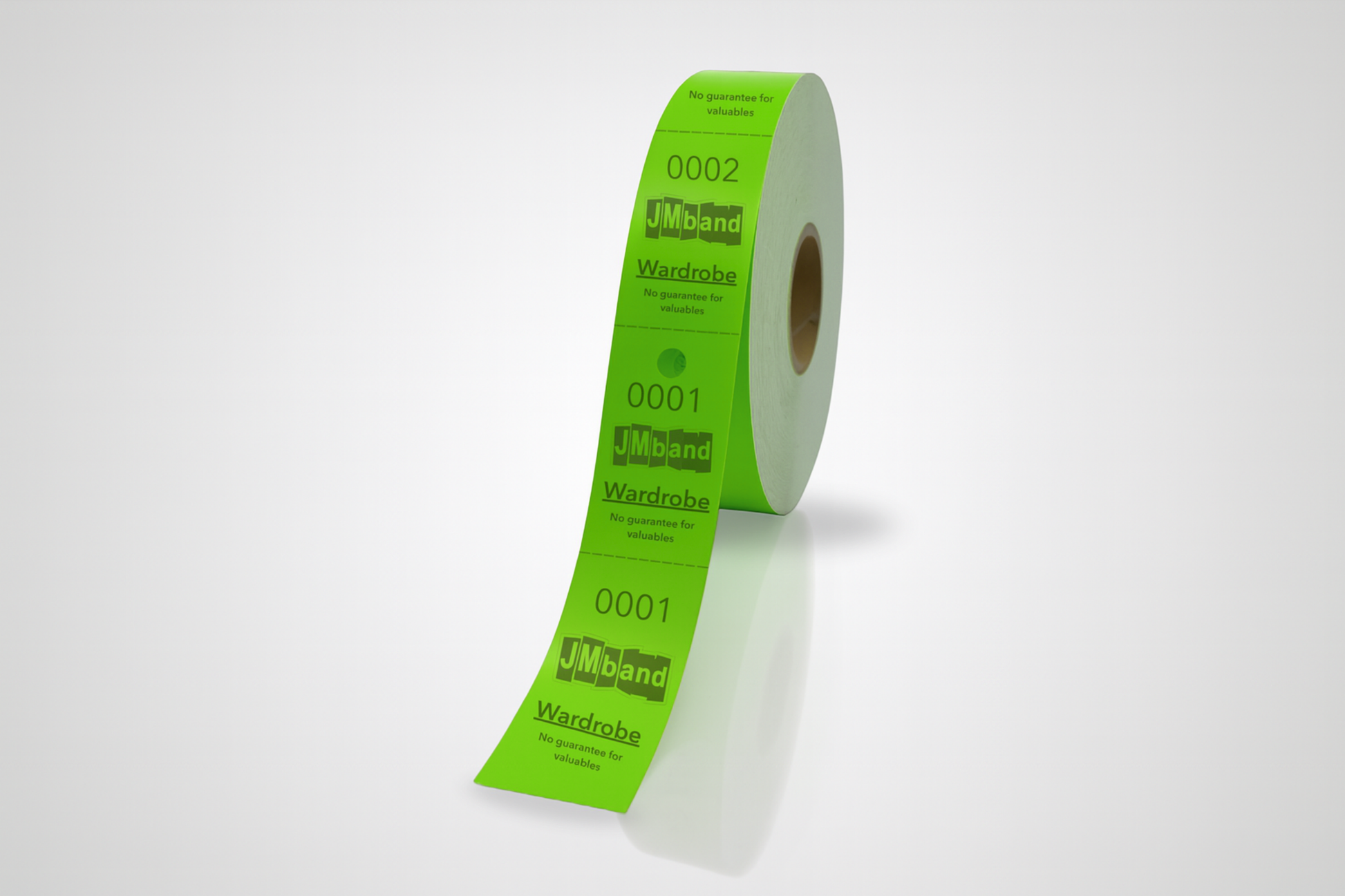 Entregamos seus ingressos de vestiário como você deseja com seu texto, logotipo, código de barras, código QR e numeração consecutiva.